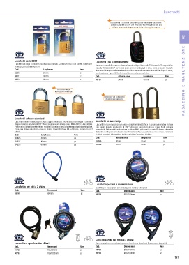 doppia ritenuta e rotazione di 360°. Arco con guarnizione tenuta acqua. Molla dell’arco inossidabile. Lucchetti in ottone massiccio con corpo a spigoli arrotondati. Arco in acciaio cementato e cromato