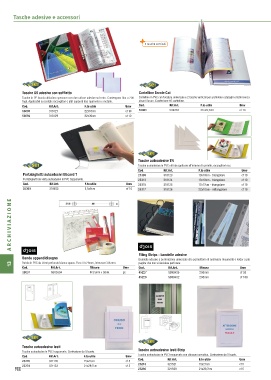 Tasche in PP buccia altissimo spessore con due strisce adesive sul retro. Contengono fi no a 200 Cartelline in PVC con foratura universale e 2 tasche verticali per archiviare cataloghi e listini senza